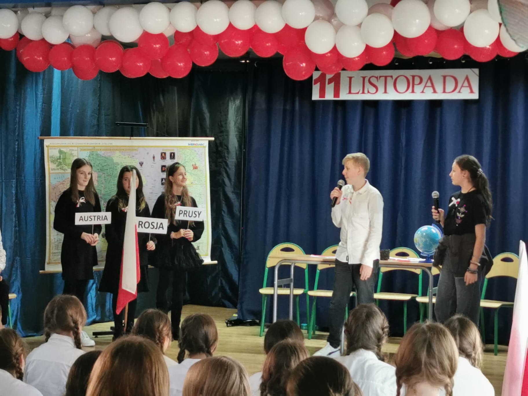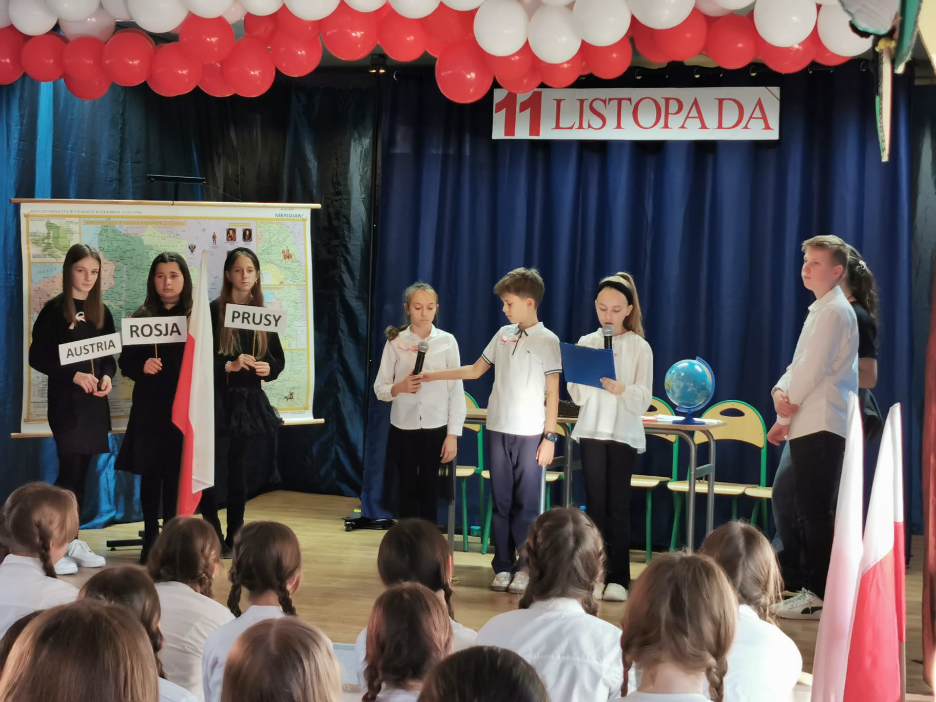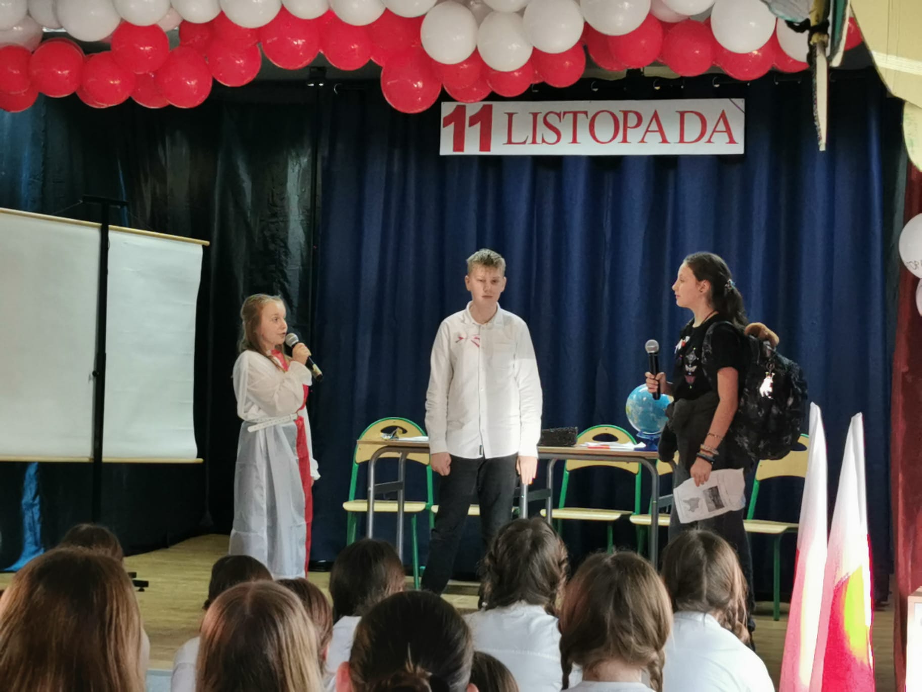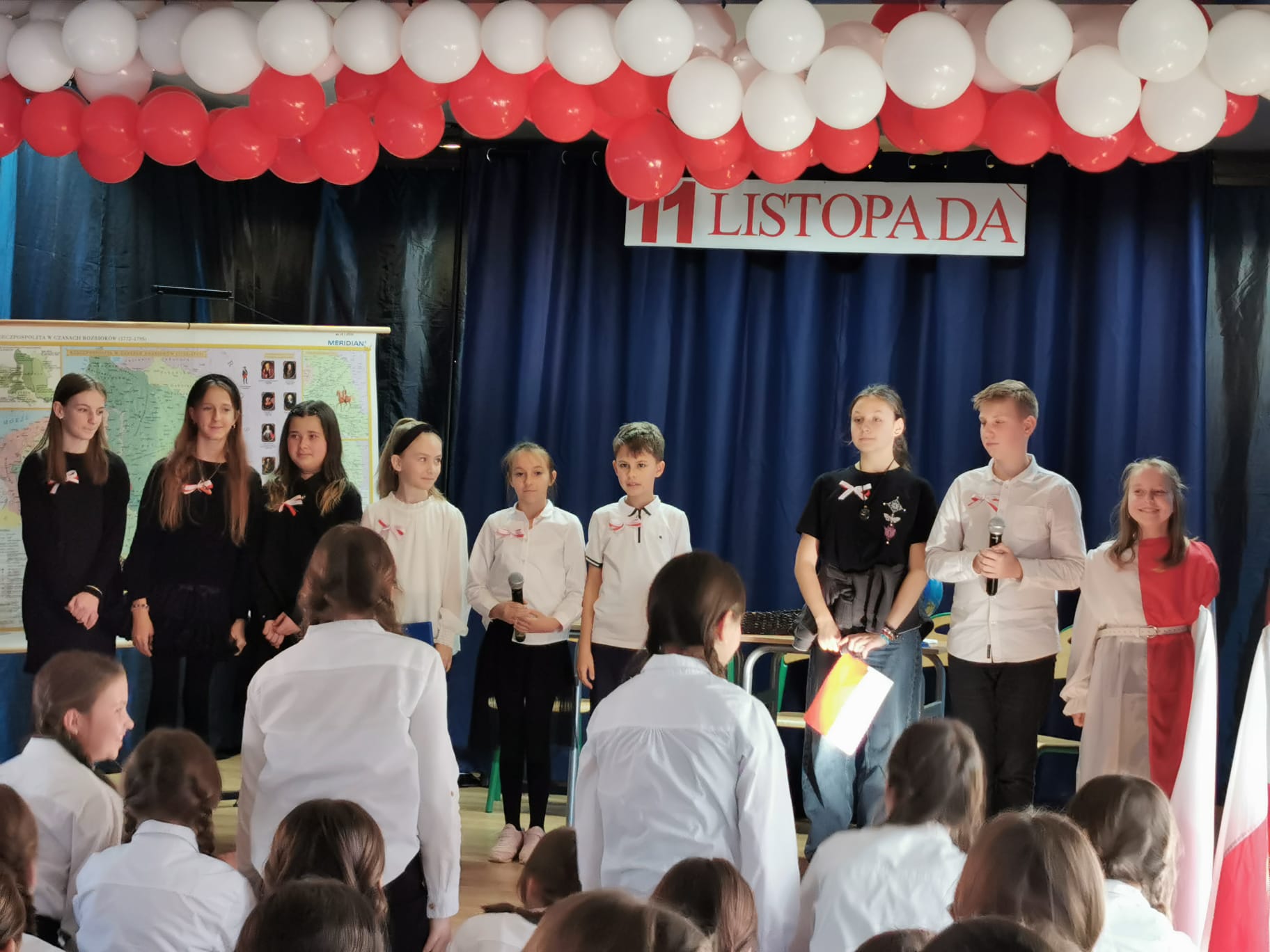 7 listopada w szkolnej świetlicy odbył się uroczysty apel z okazji 107. rocznicy Odzyskania przez Polskę Niepodległości. Uczniowie klasy 5c (w scenariuszu przygotowanym przez p.A. Walczuk ) przenieśli nas do XVIII wieku. Pokazali czasy, kiedy naszej ojczyzny nie było na mapach świata. Jak ważnym jest dbałość o kraj, jego kulturę i tradycje. Uroczystość uświetnił występ zespołu muzycznego Gamma, który, pod kierunkiem p. M. Ostrowskiej -Matusik wykonał pieśni patriotyczne. Życzymy miłego świętowania!