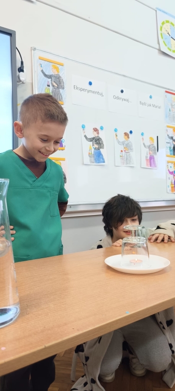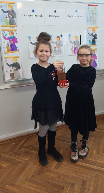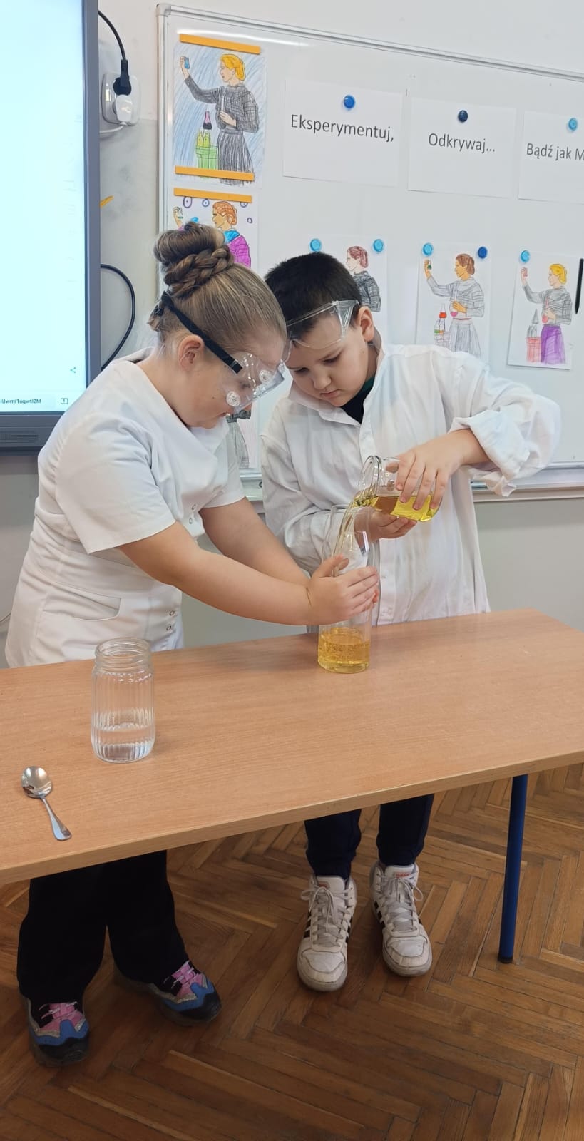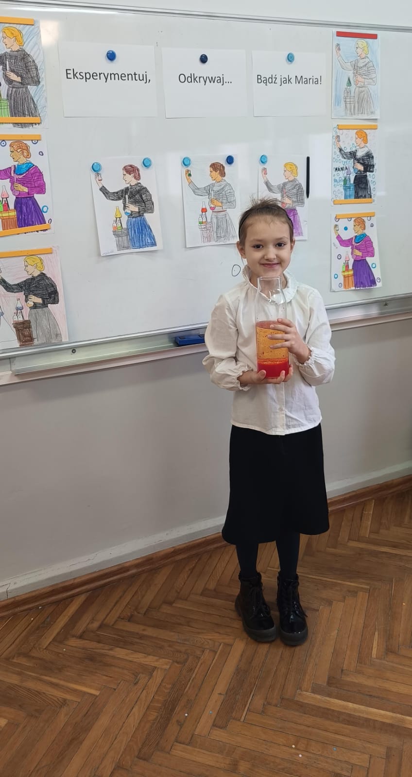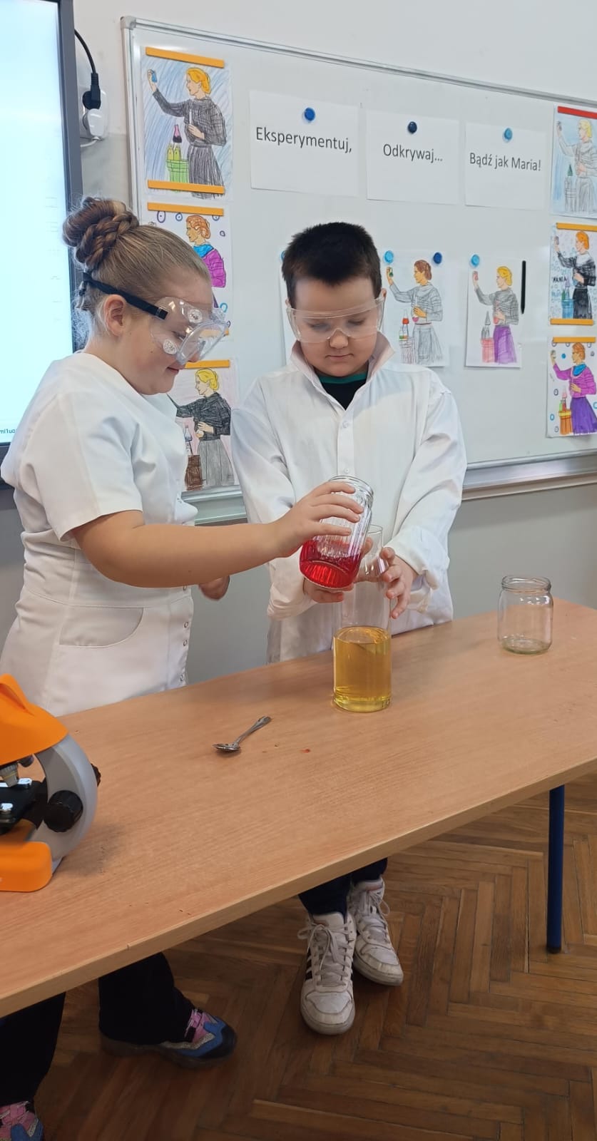 Sala lekcyjna zamieniła się w laboratorium, a nasi uczniowie w fantastycznych naukowców. Mogliśmy poczuć się jak Maria Skłodowska-Curie.