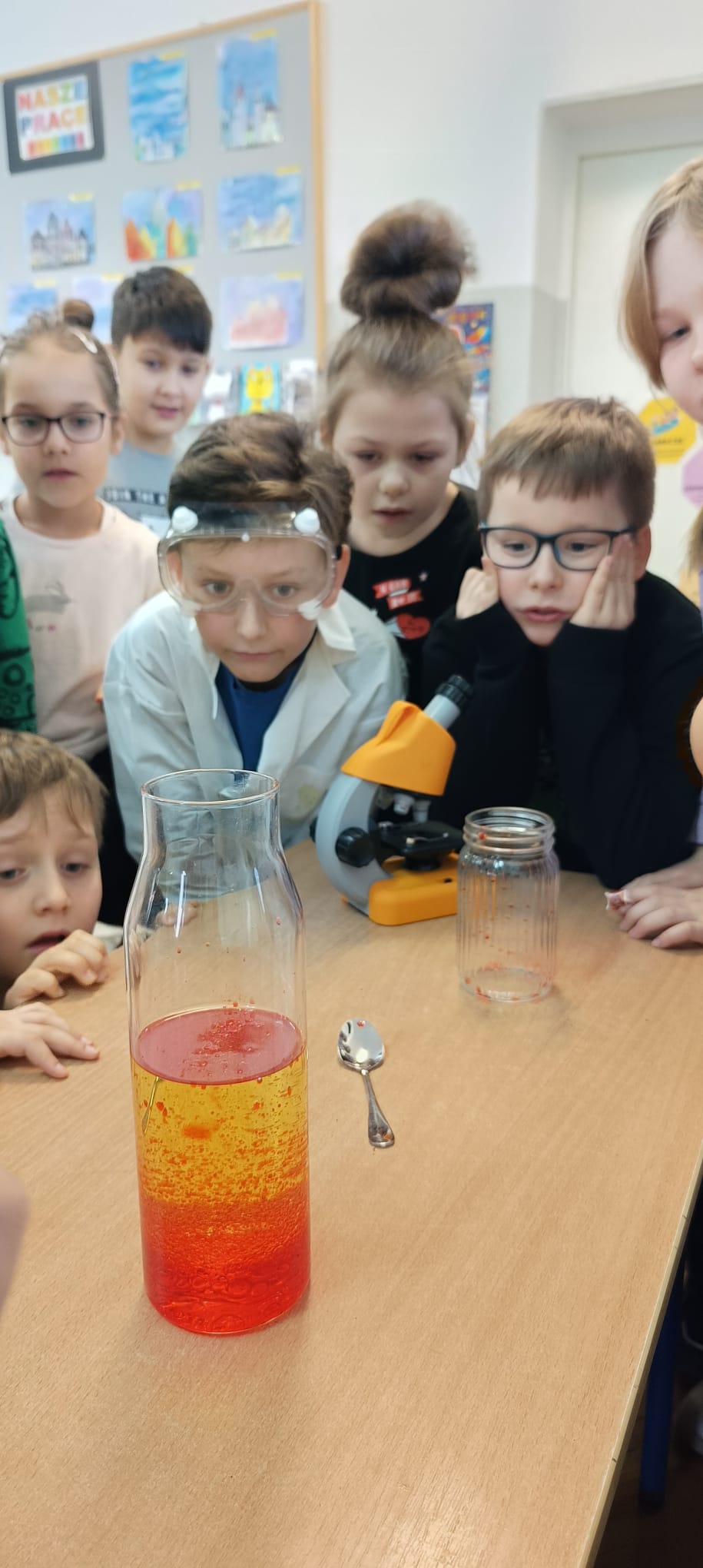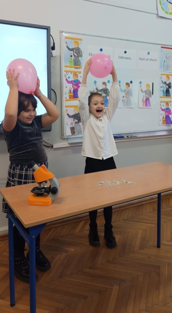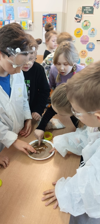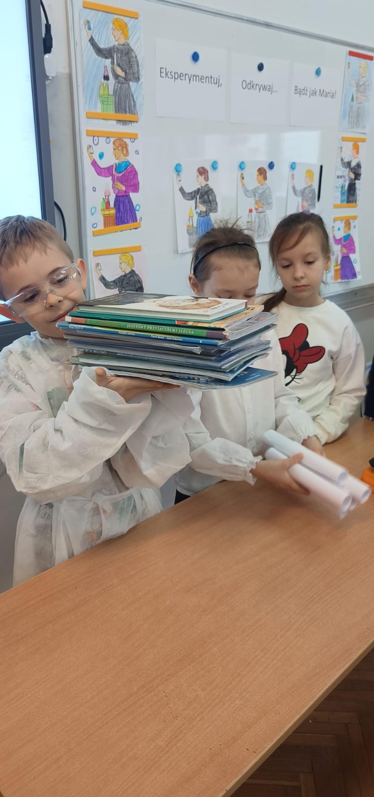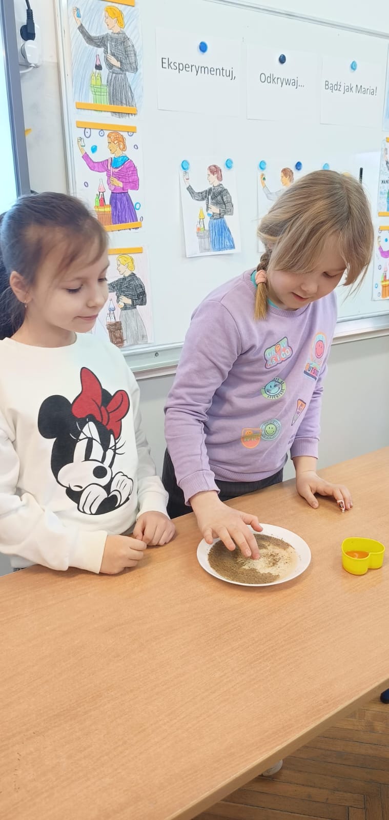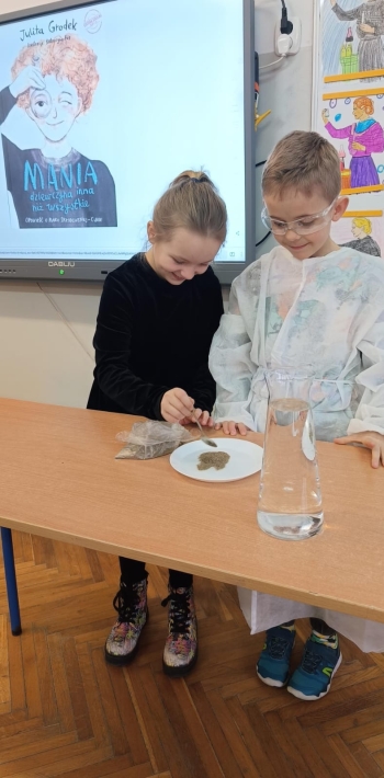 Sala lekcyjna zamieniła się w laboratorium, a nasi uczniowie w fantastycznych naukowców. Mogliśmy poczuć się jak Maria Skłodowska-Curie.