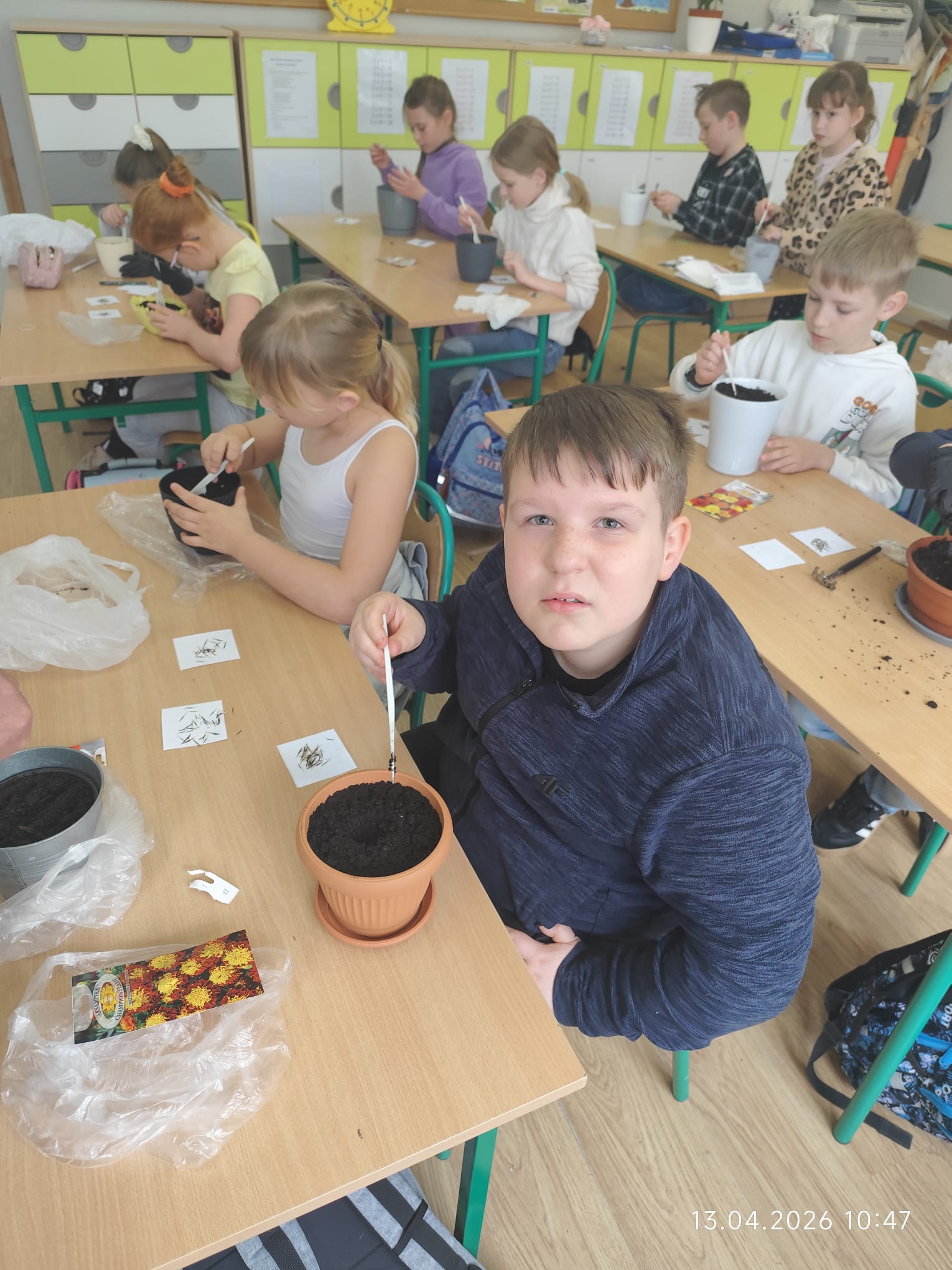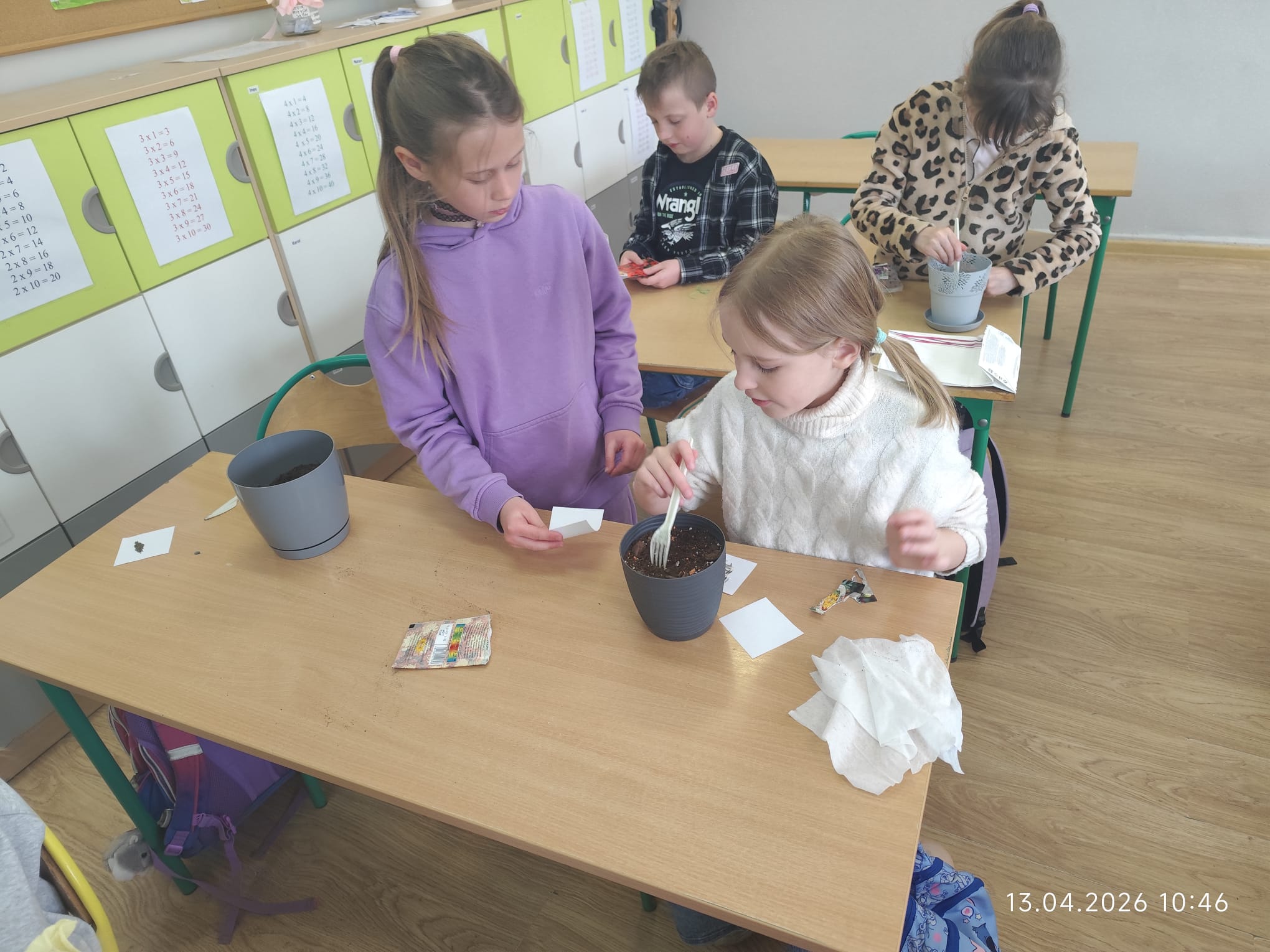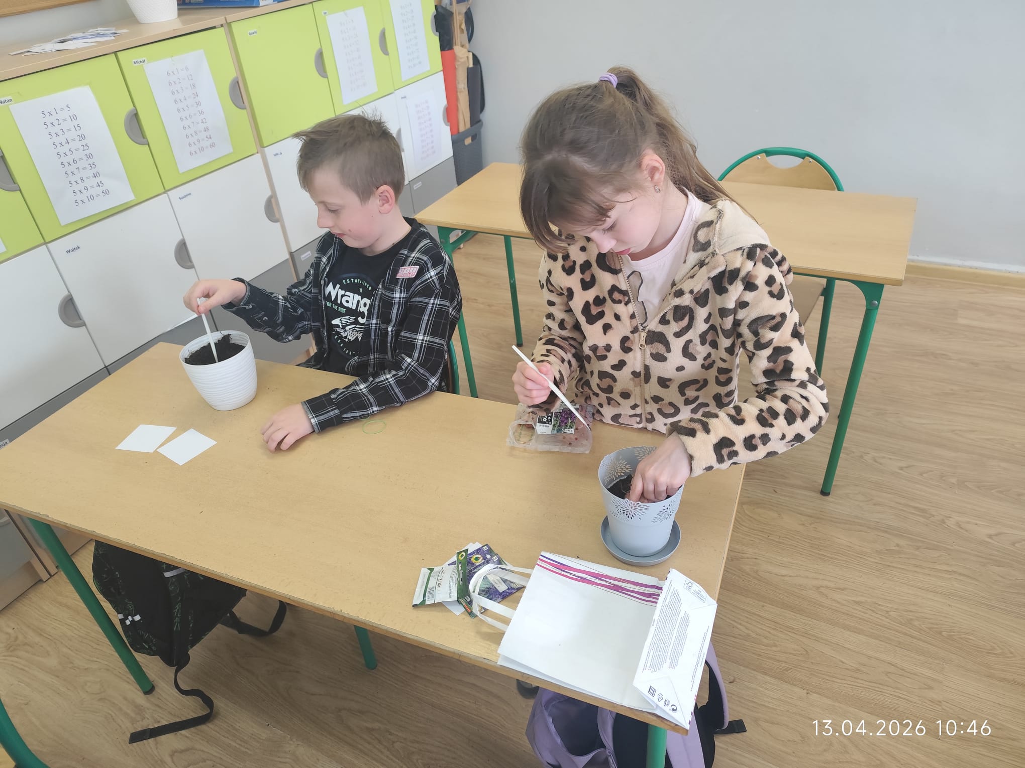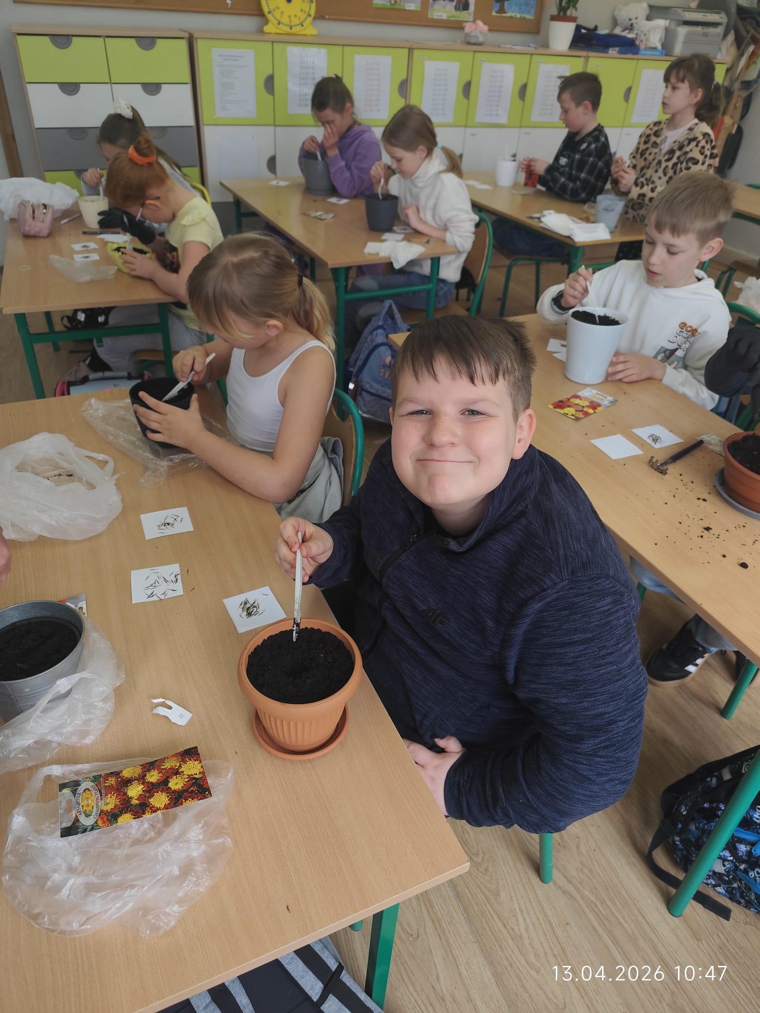 13.04.26r. klasa 3c wcieliła się w rolę małych ogrodników.Uczniowie z zaangażowaniem sadzili nasionka i cebulki, ucząc się przy tym troski o rośliny i cierpliwości. Teraz z niecierpliwością będziemy obserwować, jak rosną.