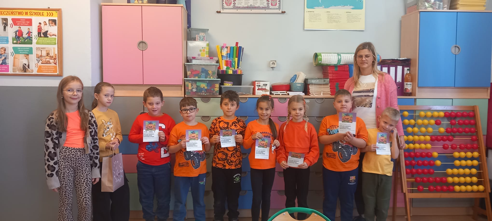 W dniu ogłoszenia wyników uczniowie uczcili zakończenie konkursu wspaniałym, pomarańczowym akcentem ubioru, wprowadzając do szkoły prawdziwie jesienną, radosną atmosferę.