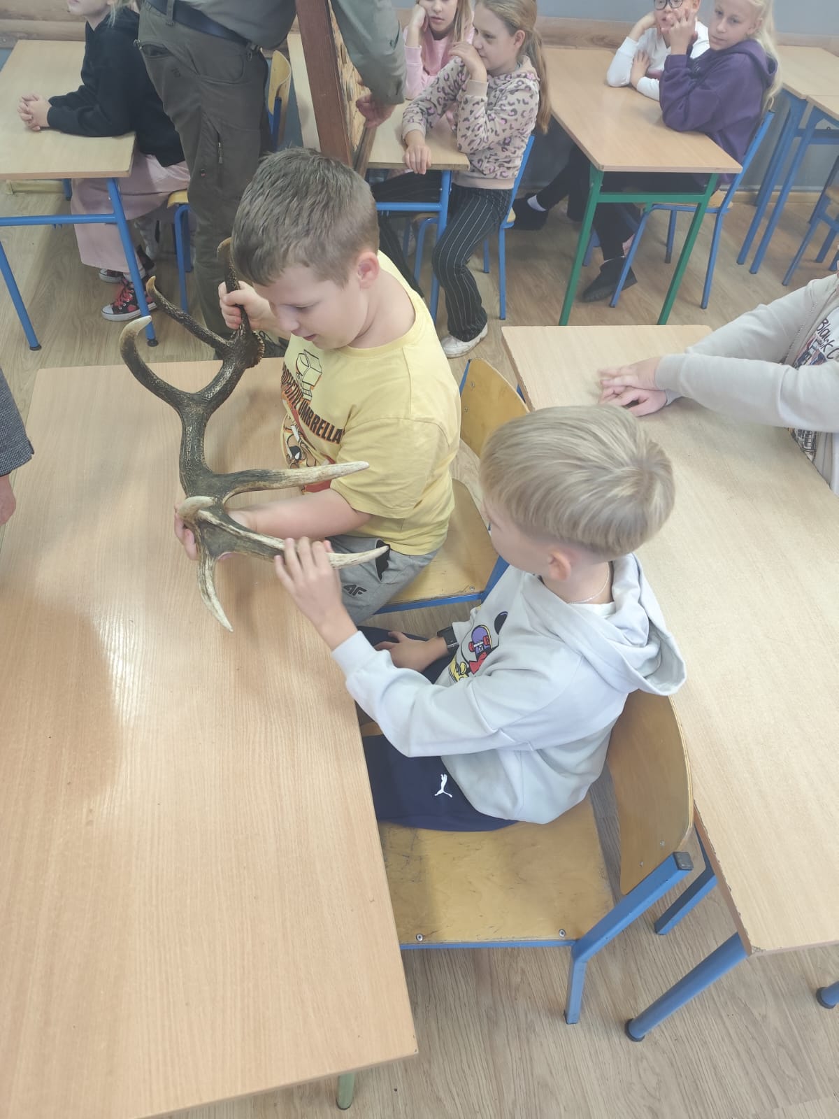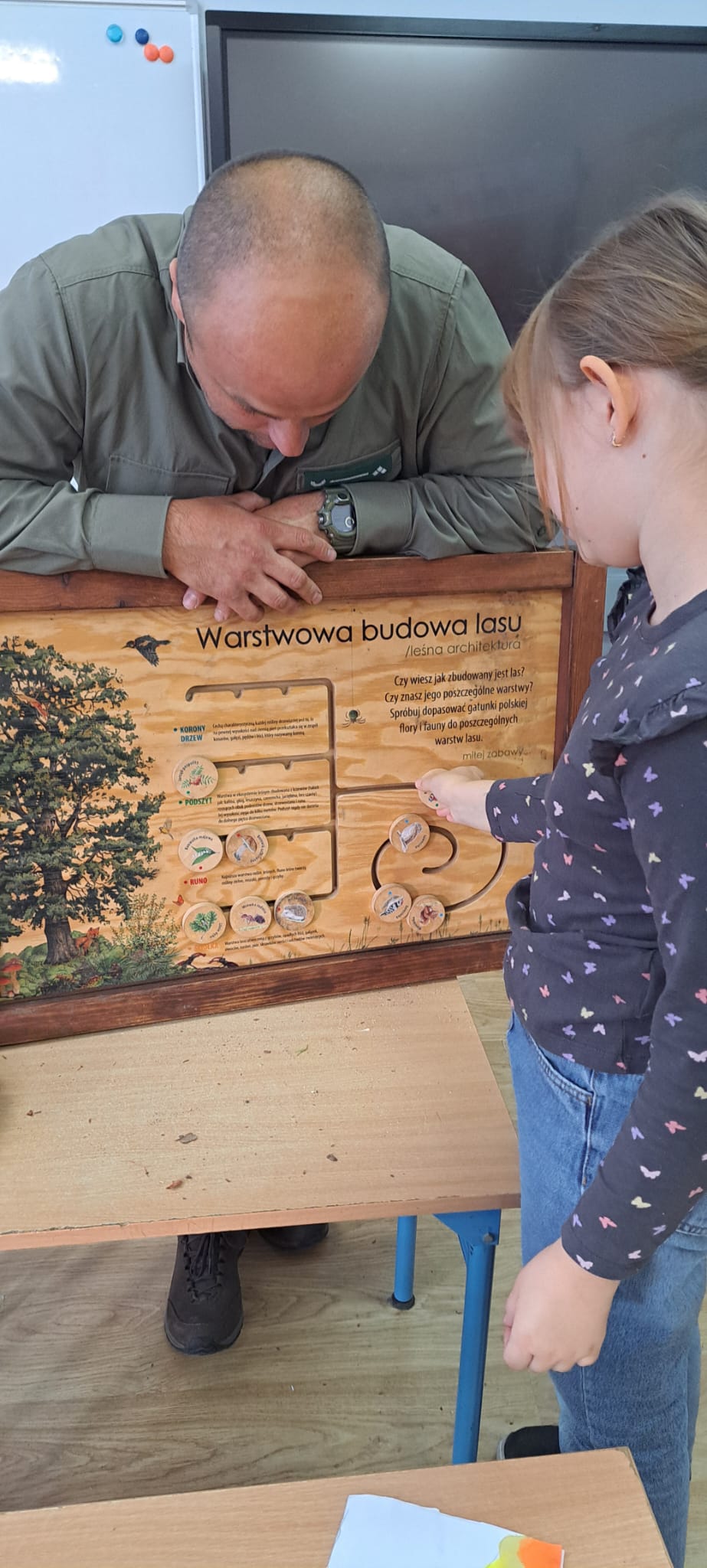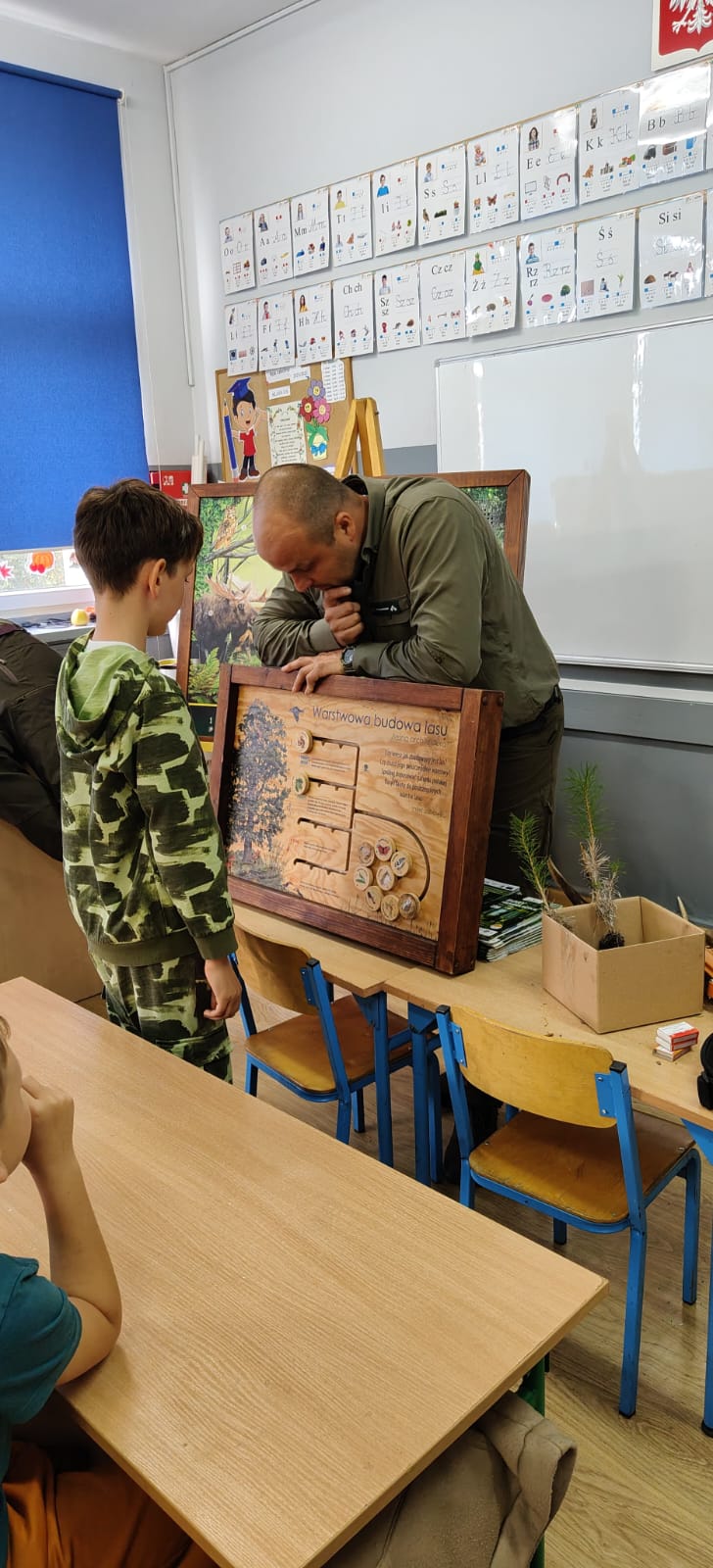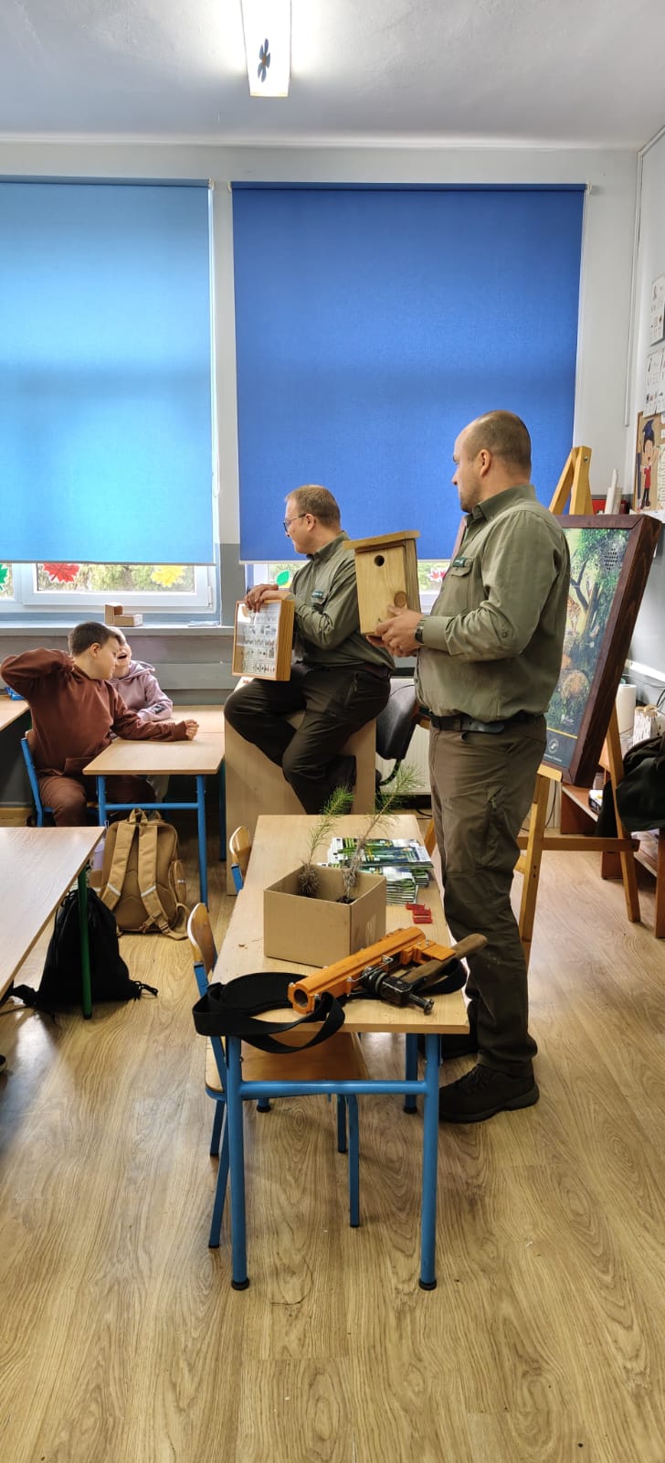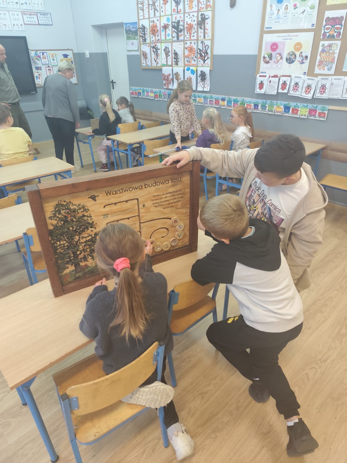 3 października uczniowie klas 3a, 3b i 3c wzięli udział w wyjątkowym spotkaniu z pracownikami Nadleśnictwa w Tułowicach. Goście w ciekawy i przystępny sposób opowiedzieli dzieciom o bogactwie przyrody naszych lasów, ich mieszkańcach oraz o znaczeniu ochrony środowiska. Uczniowie dowiedzieli się m.in., jak należy zachowywać się w lesie, dlaczego warto dbać o zieleń oraz jakie zadania na co dzień realizują leśnicy.