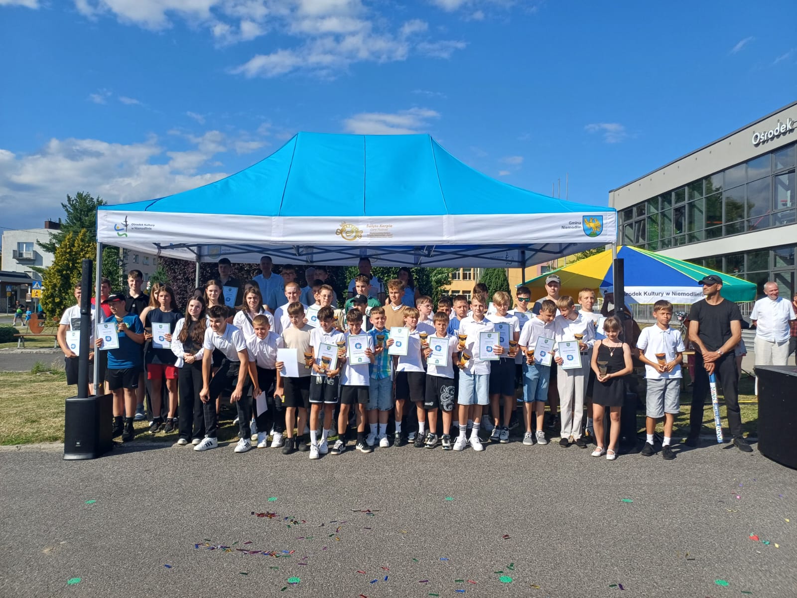 Podczas Festynu Rodzinnego organizowanego przez Gminę Niemodlin, uczniowie naszej szkoły odebrali pamiątkowe statuetki za osiągnięcia sportowe w roku 2024.