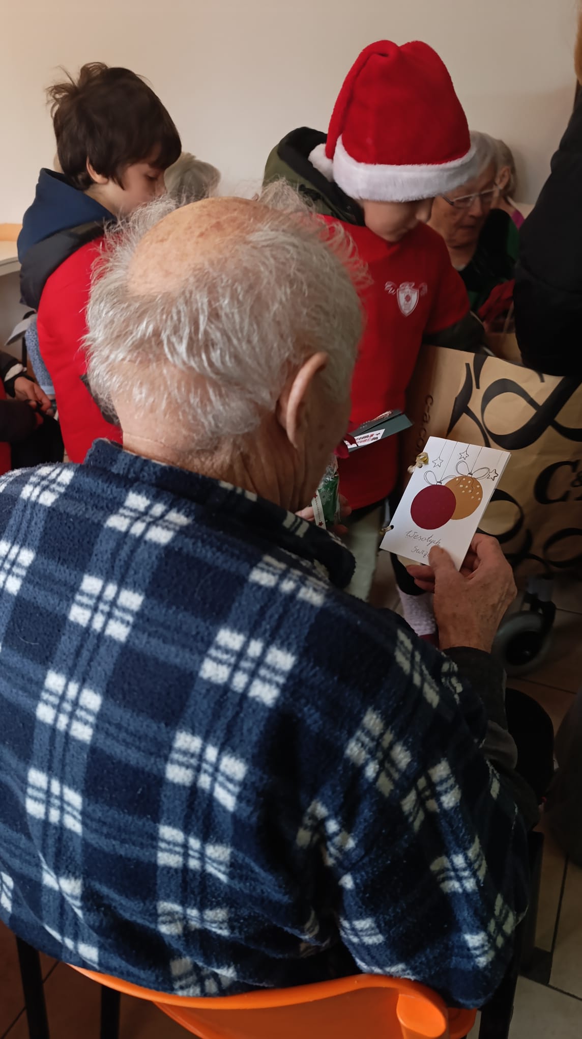 Szczególnym elementem wizyty były drobne upominki oraz kartki świąteczne wykonane własnoręcznie przez wolontariuszy. Każda kartka była niepowtarzalna, pełna ciepłych słów i świątecznych motywów, co sprawiło, że obdarowani czuli się naprawdę wyjątkowo.