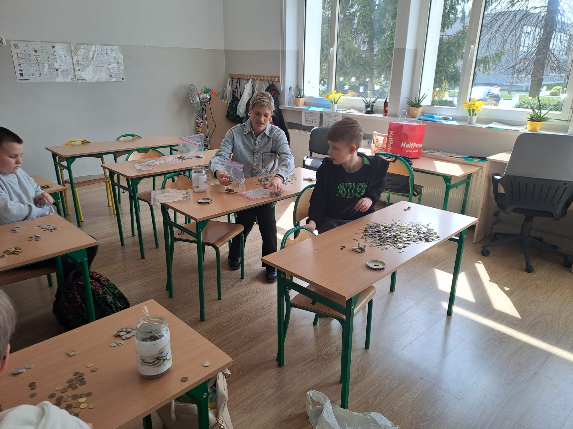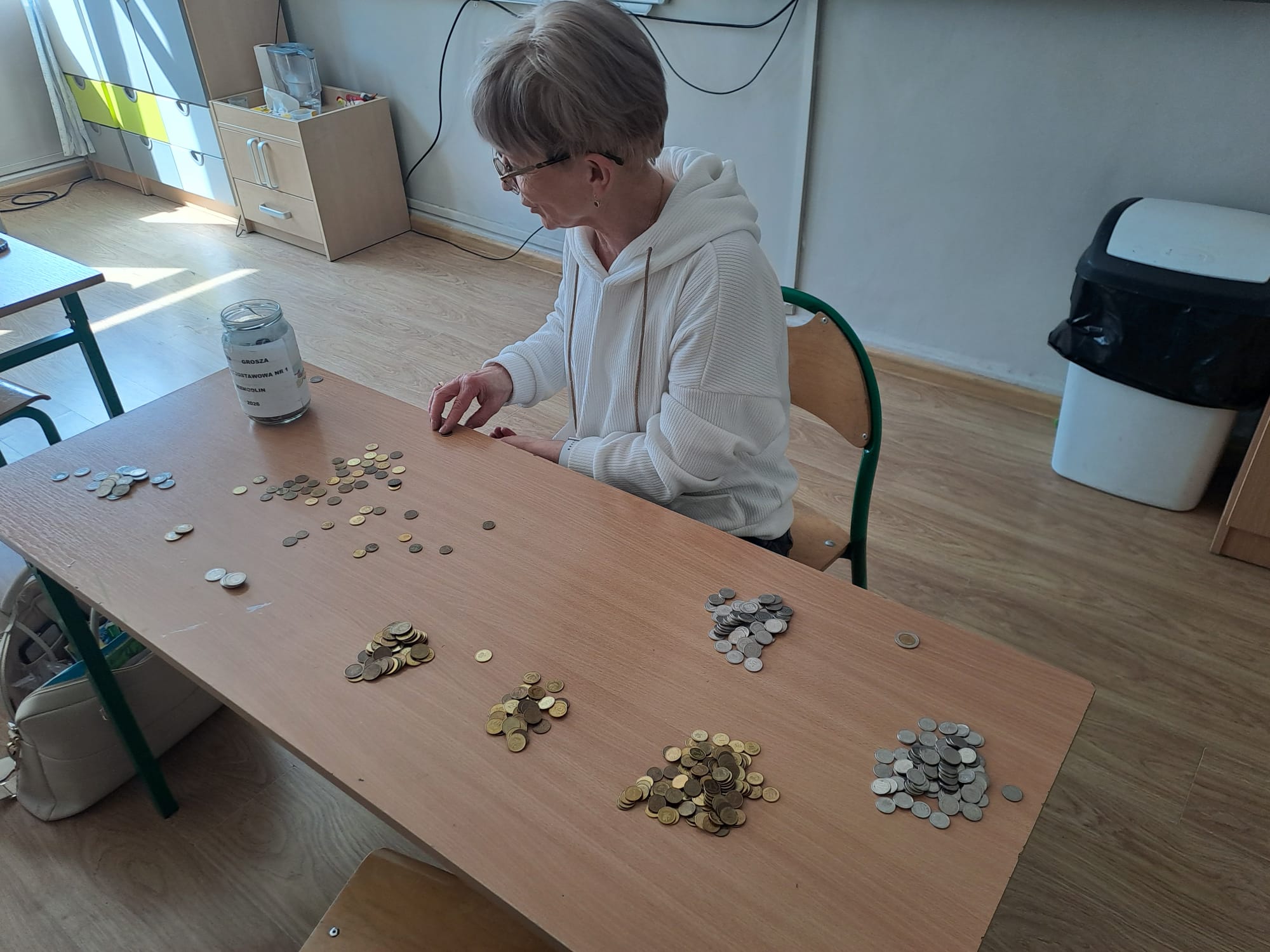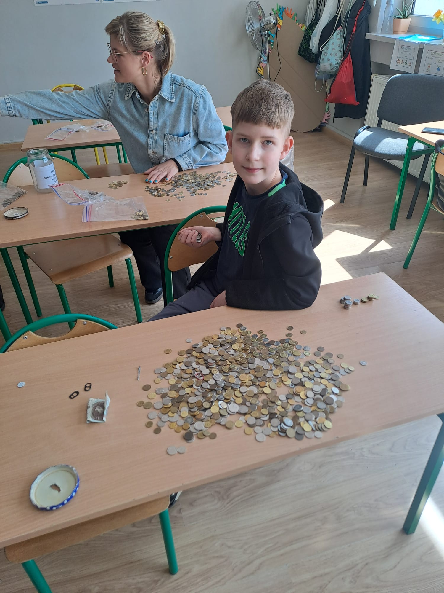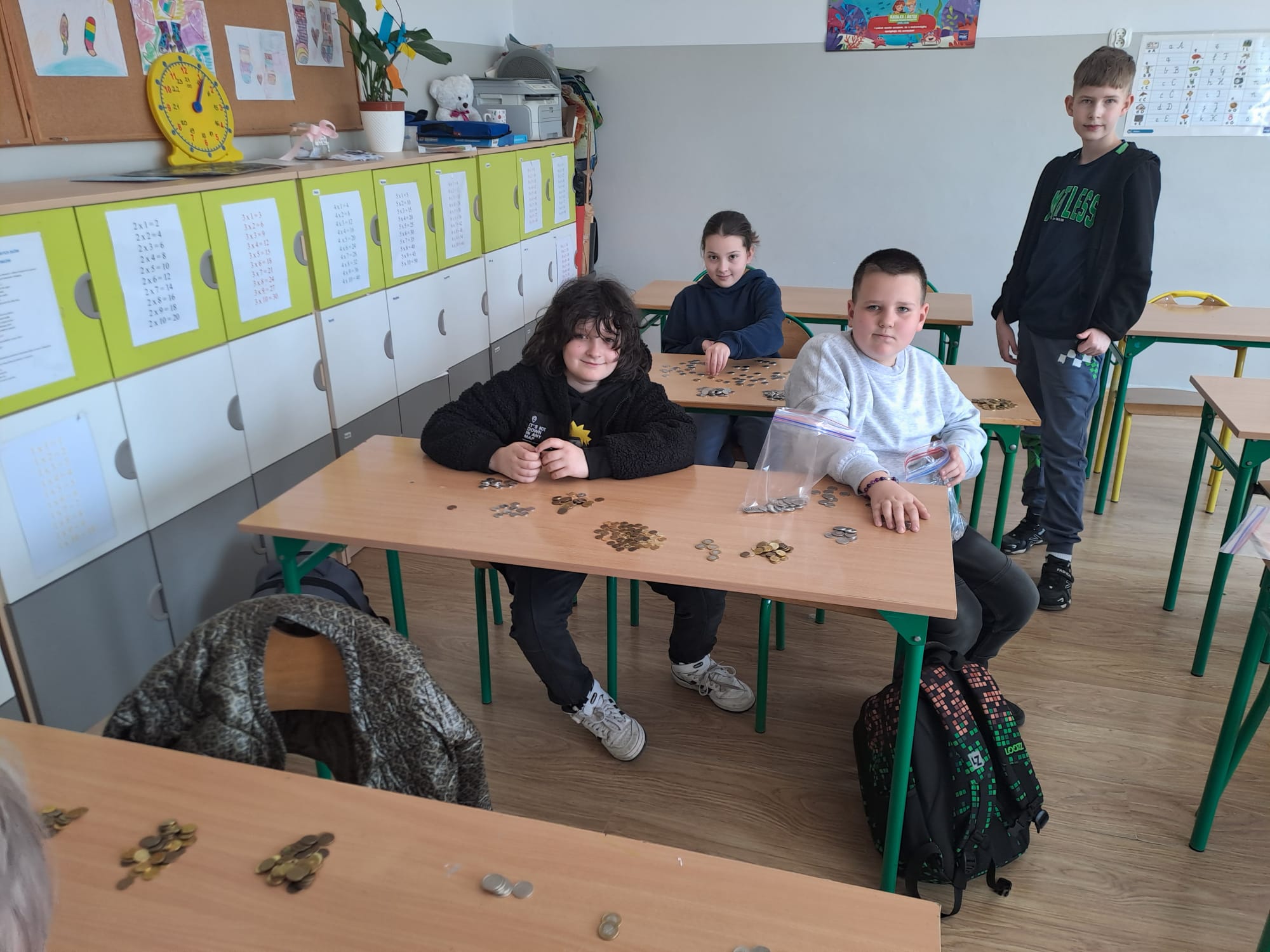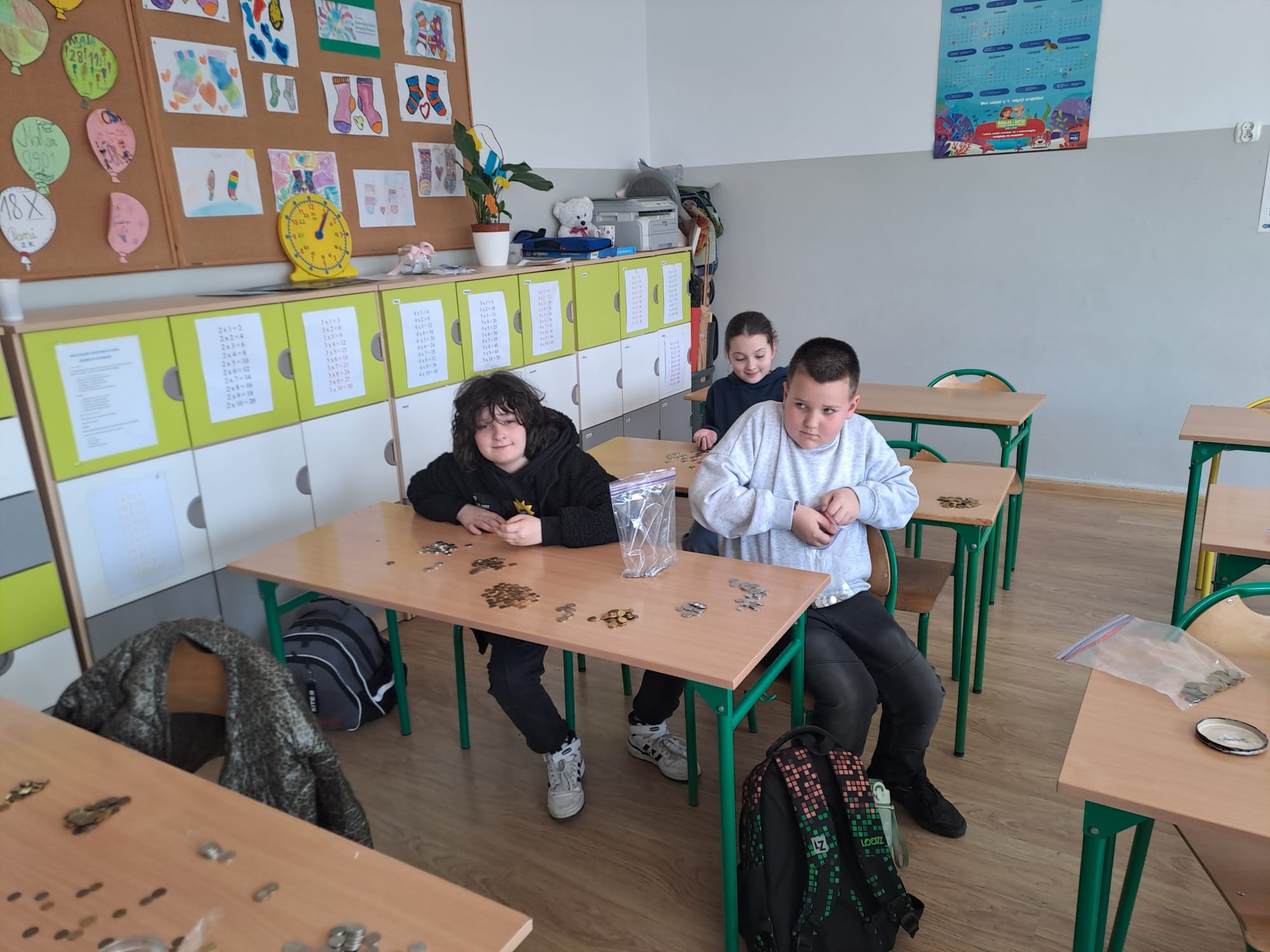 Z ogromną radością informujemy, że w ramach akcji „Zbiórka Grosza” nasza szkoła uzbierała aż 795,69 zł! To piękny efekt wspólnego zaangażowania uczniów, którzy z wielkim entuzjazmem przeliczali zebrane pieniążki – co możecie zobaczyć na załączonych zdjęciach. Każdy grosik miał znaczenie! Dziękujemy wszystkim dzieciom, rodzicom oraz nauczycielom za udział i wsparcie tej inicjatywy. Pokazaliście, że razem możemy naprawdę wiele. Jesteśmy dumni z naszych uczniów i ich wielkich serc!